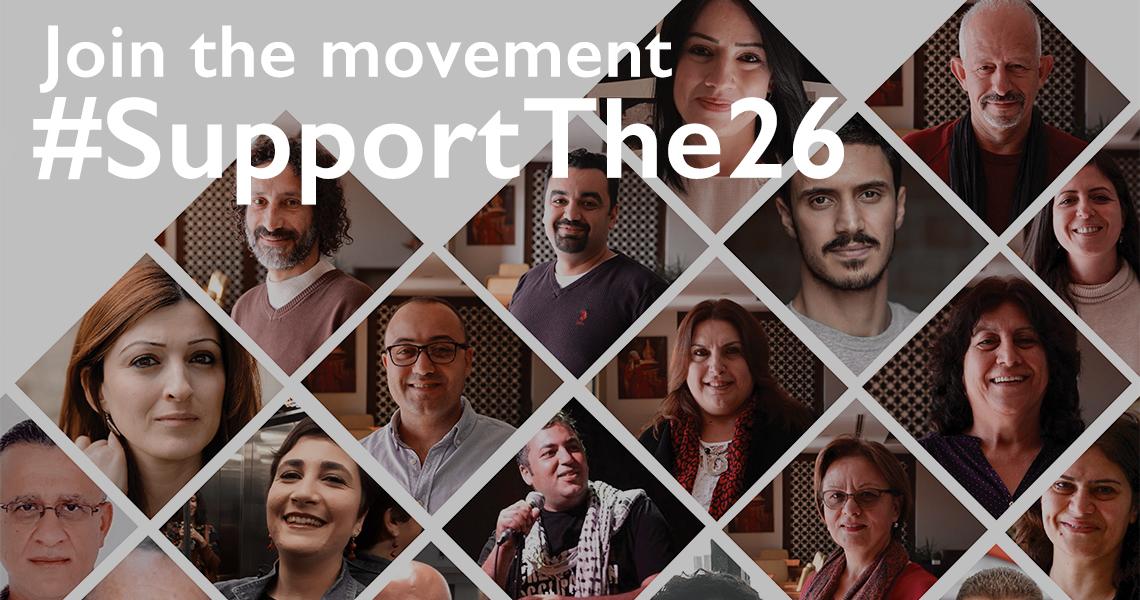 STAY POSTED | Follow the 26, share our stories, and join the conversation. Join our mailing list. Follow us on Facebook and Twitter. Amplify the voices of support for Palestinian communities—re-post, comment, and share on social media. Build the movement faster by sharing this #SupportThe26 campaign with 26 friends over email and/or social media.