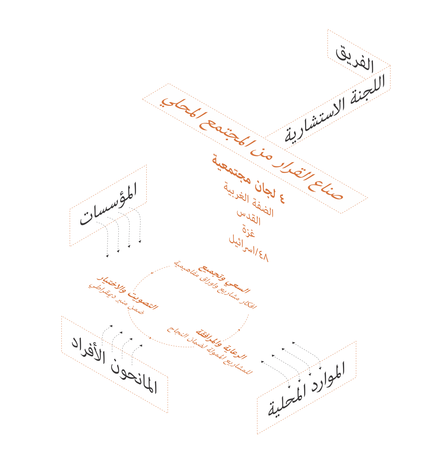 إن هذه العملية التشاركية والتعاونية والديمقراطية تعزّز التواصل والتعلمّ والتشبيك والتضامن والتبادلية بين المجتمعات الفلسطينية مقطعة الأوصال. وبعد أن يتم اختيار الحلول التنموية التي تم اقتراحها للحصول على التمويل من قبل المجتمعات المحلية، يقوم الشركاء المحليون بمرافقتهم وتوجيههم طوال مرحلة الدعم بدلاً من إعاقتهم عبر فرض شروطٍ تعسّفية ومتطلباتِ توثيق مستندة إلى المخرجات.